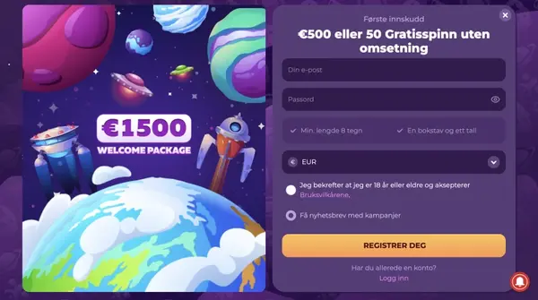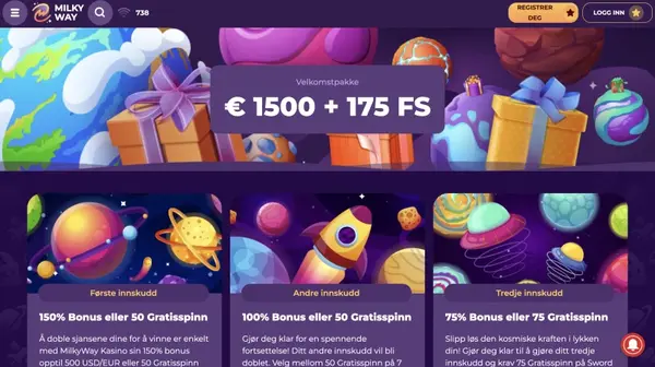 Vi holder MilkyWay-tilbud enkle Ä vurdere fÞr du velger Ä bli med, med nÞkkelvilkÄr synlig i bonusomrÄdet. For Norge kombinerer velkomstpakken innskuddsbonuser med gratisspinn, i tillegg til et lite gratisspinn-tilbud for nye kontoer. NÞyaktig kvalifisering avhenger av kontostatusen din og eventuelle verifiseringskontroller.