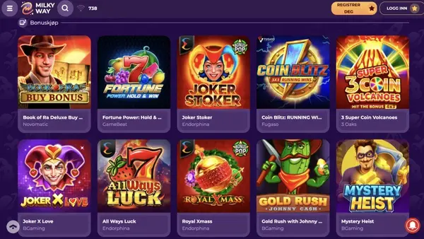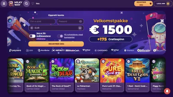 Velkommen til MilkyWay Casino: trygt spill, mange spill og EUR-banking for Norge